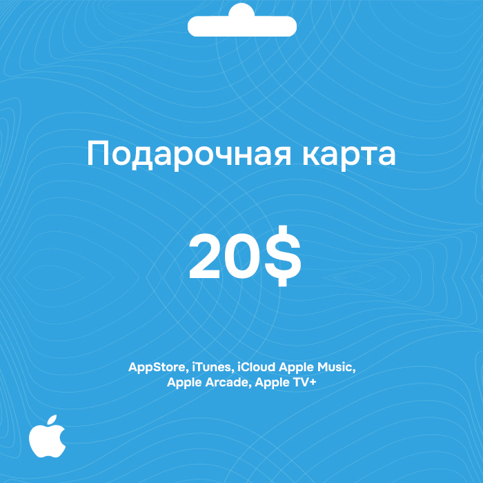 Купить подарочную карту Apple номиналом 20 долларов и использовать для покупок и оплаты во всех сервисах Эппл: